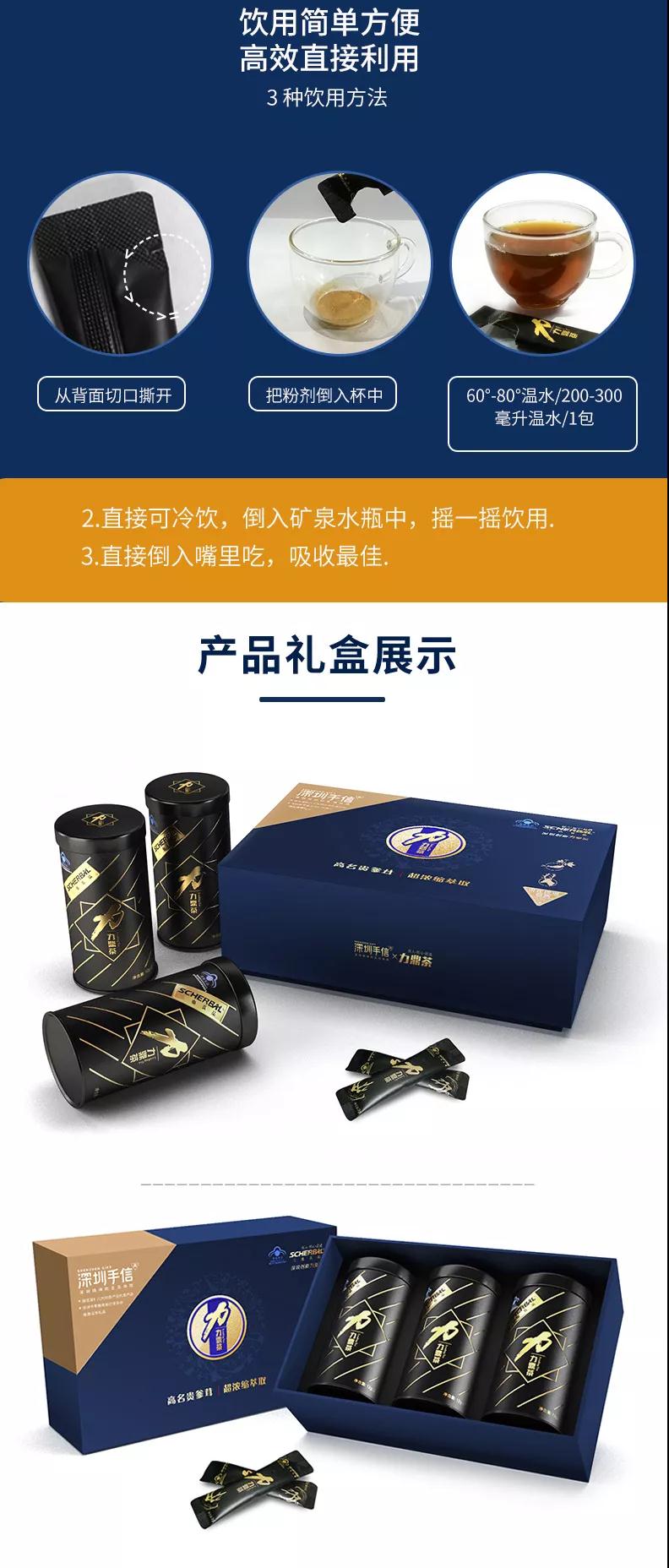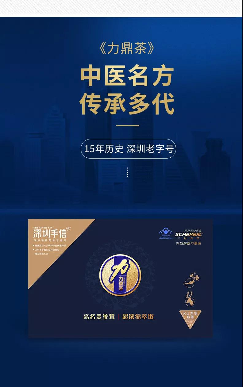力鼎茶被选为深圳手信商城官方产品,被誉为 “深圳老字号” 佳节在即 还没有准备好礼品的 赶紧选一套哦 深蓝雅礼装盒,包装大气讲究,用来送客户或是领导也非常适合。 15年 名医名方 祖传配方保健茶 送给你更丰富的人生品味。 中国红礼盒装,包装喜庆精美,用来孝敬父母和长辈,力鼎茶大补气血,通筋利脉,还能解决长辈们的亚健康问题! 都说送礼送健康 烟酒比不上茶 中秋情更浓 有茶更有心 |